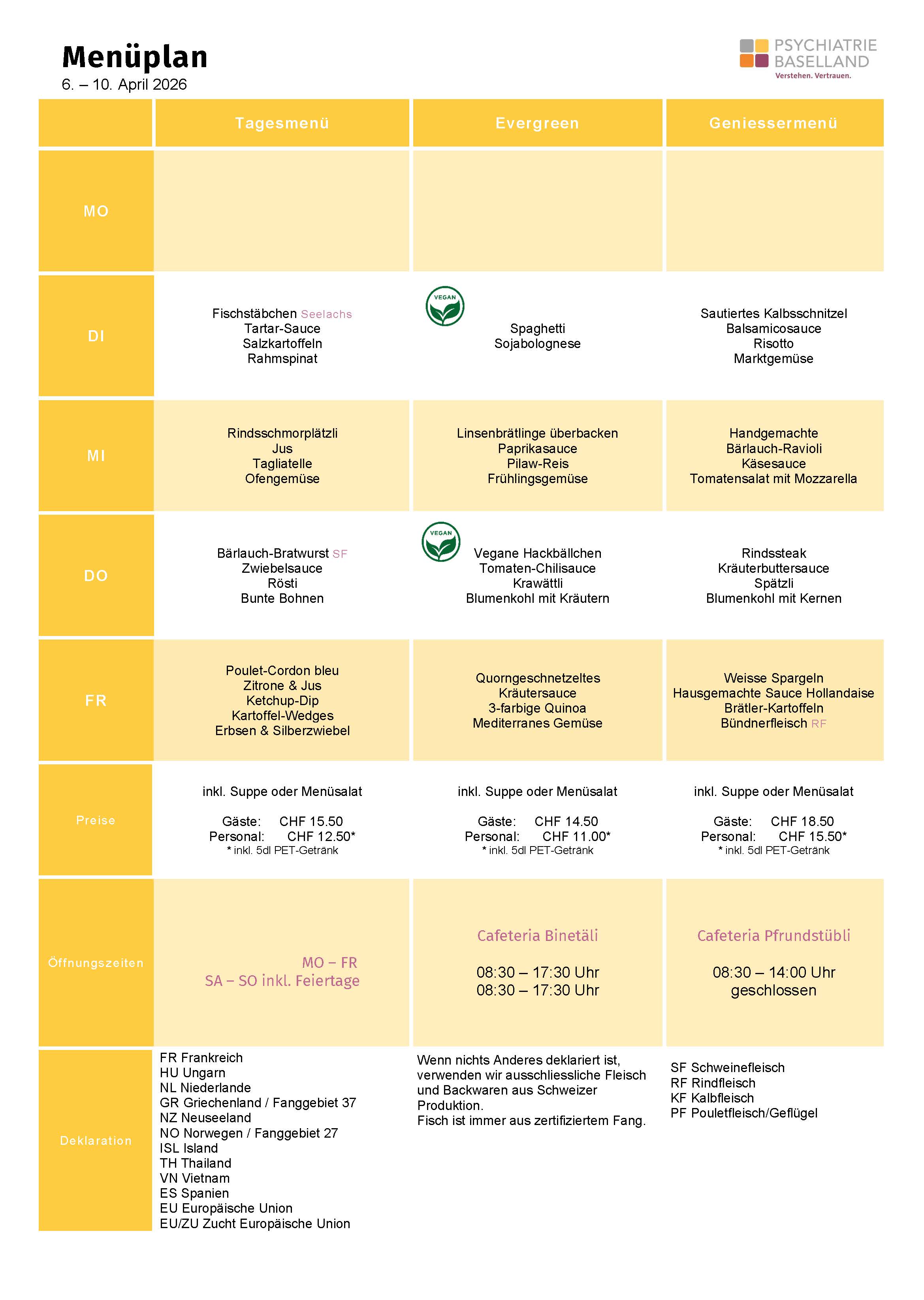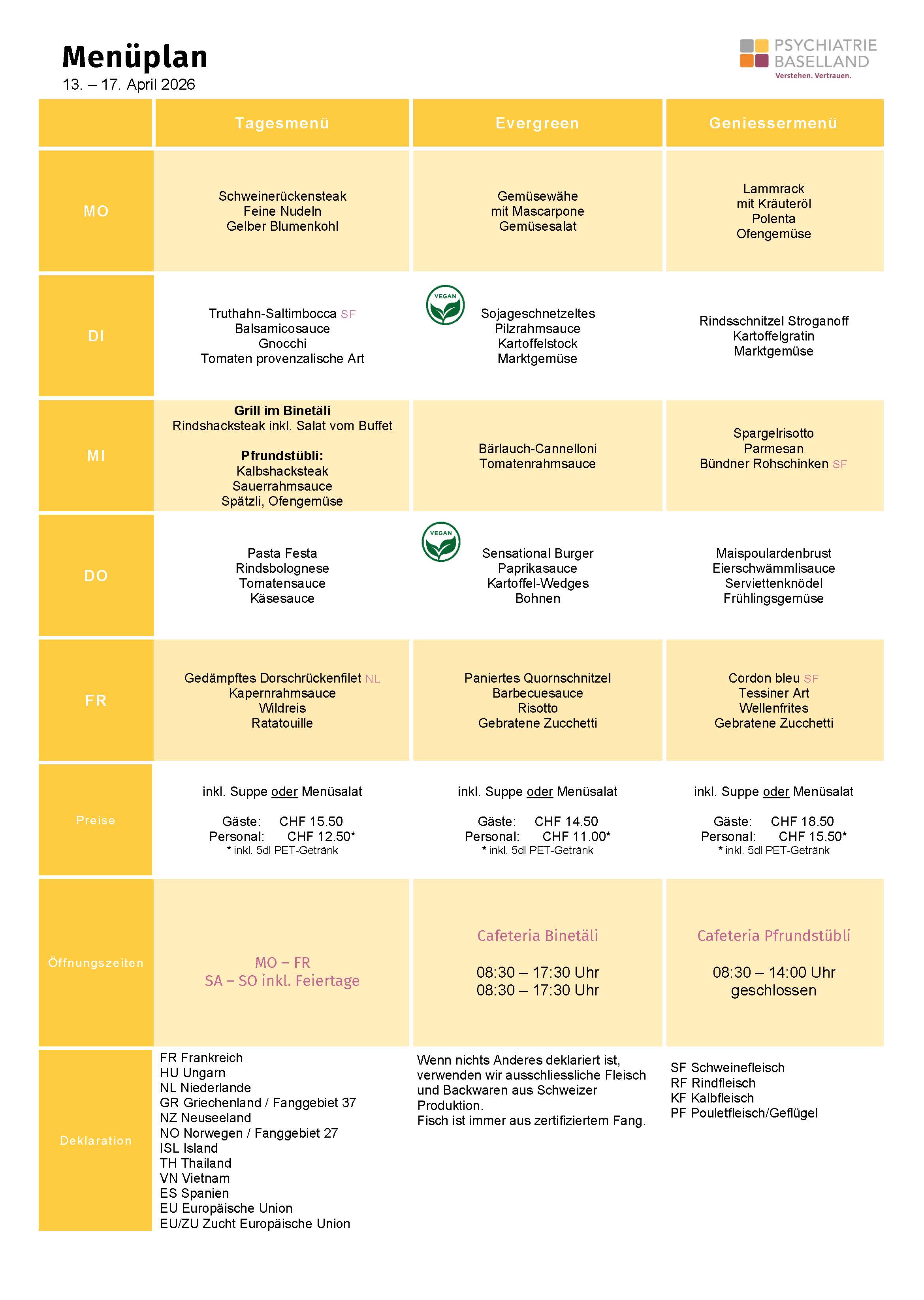 Unsere Cafeteria ist öffentlich und steht Patientinnen, Patienten und ihren Angehörigen, Mitarbeitenden sowie Besucherinnen und Besuchern offen. Sie ist ein beliebter Treffpunkt für unsere kleinen und grossen Gäste. Von Montag bis Freitag bietet sie attraktive Mittagsmenus sowie tägliche vielfältige Auswahl an Snacks und Getränken. Im Sommer lädt eine gemütliche Gartenterrasse zum Verweilen ein.